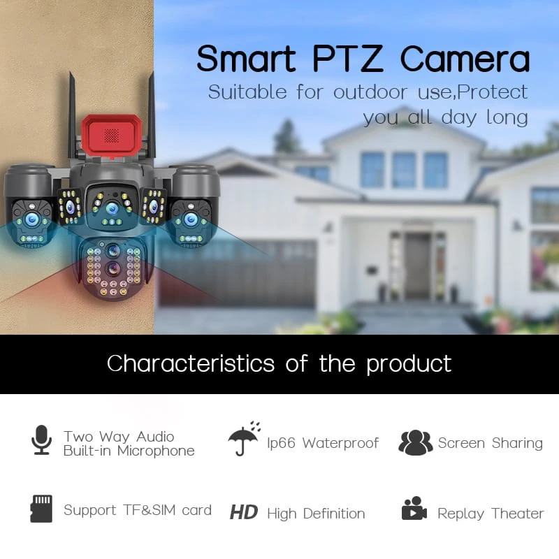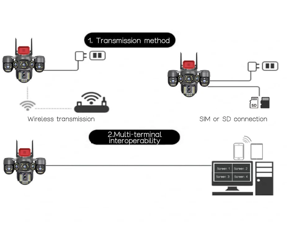 5-lens zoom surveillance camera, outdoor wireless monitor, night vision, 4G
