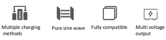 • Pure sine wave AC output for appliances under 300W