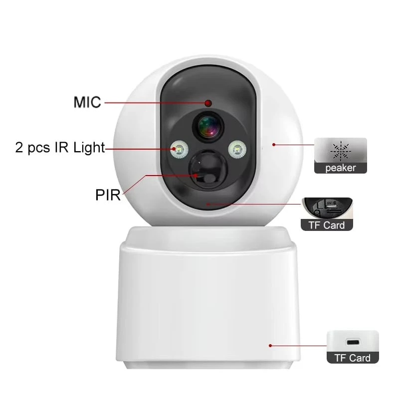 Fluent 2-way built-in anti-noise microphone and speaker can chat with your family at anytime and anywhere 0-355 degree Horizontal pan rotation, 0-90 degree tilt rotation High-precision PIR sensor quick and precise triggering